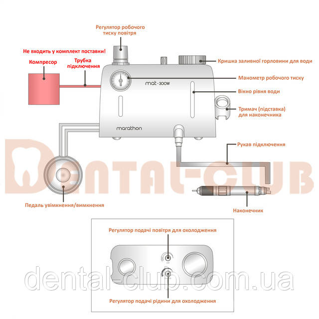 • Компактная зуботехническая турбина с водяным охлаждением.